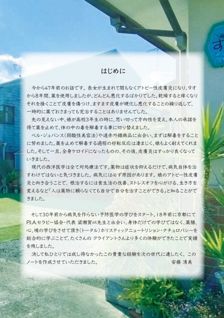 これは、ご自身の長女のアトピー性皮膚炎との壮絶な戦いから、薬を止めて解毒へと方向転換し、健康を掴み取った体験、そしてたくさんのクライアントさんとの体験に基づいた知恵の結晶です。